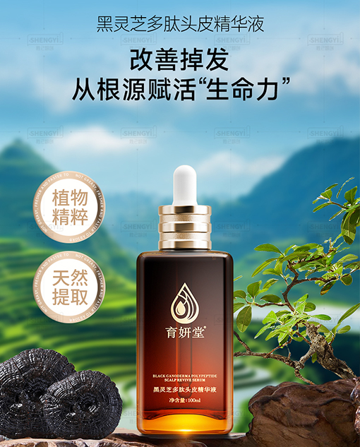 18 味名貴中草藥 + 梯田淘米水發酵提取物 + 黑紫靈芝多肽萃取精華,精準作用毛囊。